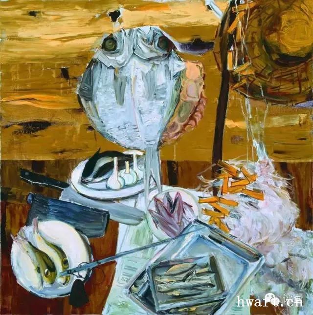 戴士和《立鱼干、鲜河豚》局部 布面油画 100x2500px, 2014年