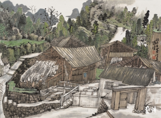 《夯吉苗寨之一》39cmX53cm宣纸卡片 2017.4