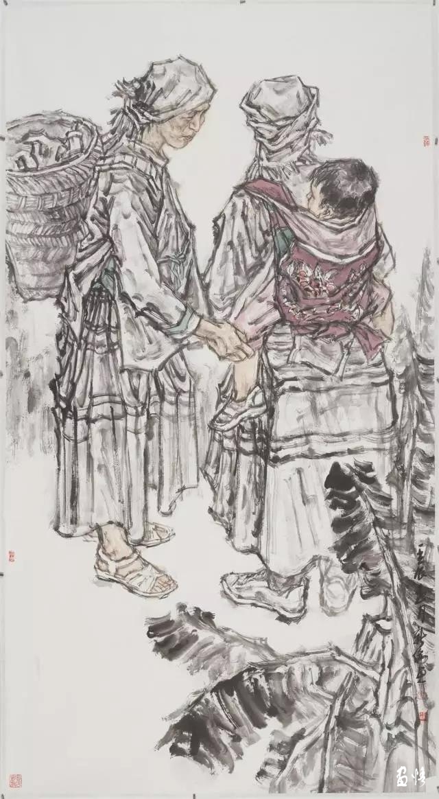 赶墟之二 96x180cm 国画