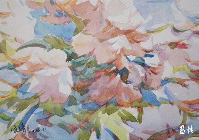 书画之妙,当以神会,难可以形器求也。今观俊清之水彩,或淡雅,或晴朗,或空濛或激越,色感富有生命张力,简约且有印象之写意也!