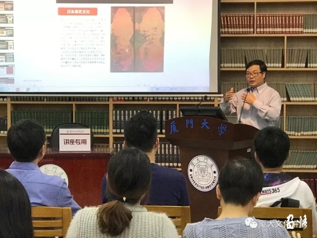 2017年11月12日星期天晚上,网造的双十一购物节刚刚过去,大家都仍沉浸在购买的狂欢和喜悦之中。漆画,做为特殊的艺术品,集工艺技术、艺术技艺及创造思想精华于一身,再加上创作工艺时间长、难首大、技术特别以及收藏时间特别持久等诸多原因,做为艺术品商品的漆画价格特别昂贵,数量也特别稀少,因此,与双十一这样的购物节的商品销售与交易无关。艺术品市场与一般商品的交易还是有较大的区别的。正因此,双十一购物节与漆画无涉,但是购物节之后的第一个星期天的晚上,厦大文化讲堂经过多年积极主动邀请并未能请到的漆画大师,这次因缘际会,首先是周教授刚好来厦门参加一场盛大的艺术交流活动,空闲时间,被周教授在厦大的一个同学,厦大哲学系博士生导师黄永锋教授特别邀请到厦大文化讲堂开讲。