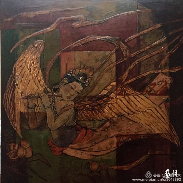 《丝路妙音》系列漆画在图式上不仅汲取了中国传统的丝路壁画中的绘画构成,还借鉴了西方绘画现代派的表現技法。