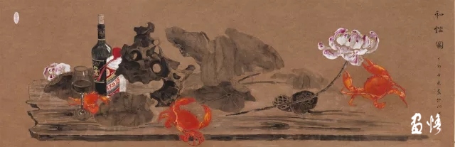 荷蟹情 岩彩纸本国画 25x60cm 2016年
