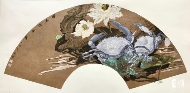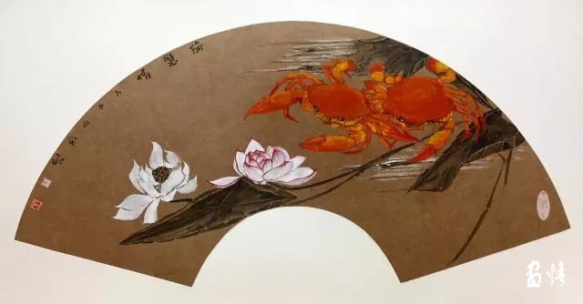 方宋的岩彩画是继承与创新、传统与现代”的结合体---以螃蟹为主题的岩彩画系列。长在红树林里的大螃蟹和泥蚶是上天赐予福建云霄人的特殊礼物。