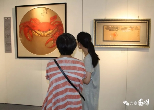 展厅10多幅专题蟹画,吸引了众多参观者的眼球。