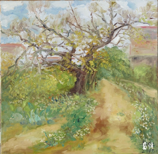 鸡鸣堂边的风景60X60cm油画