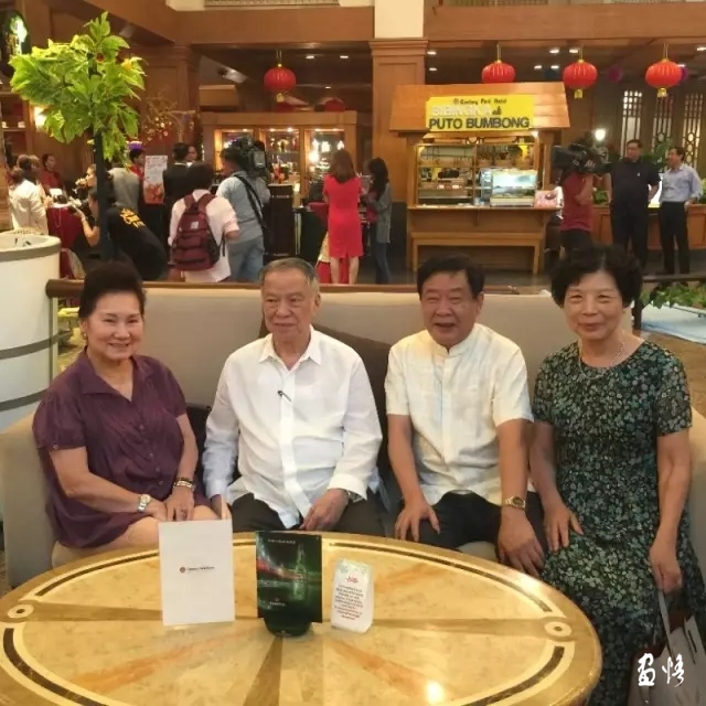 与中国驻菲使馆潘峰(左)文化参赞亲切交谈