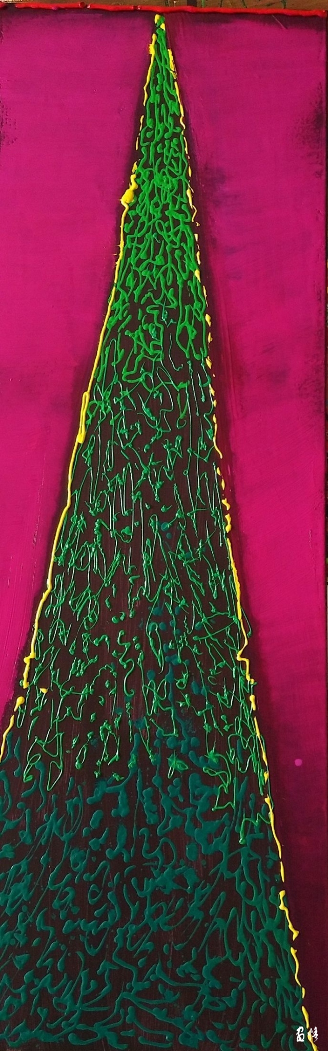 Nach so vielen Jahren Erfahrung fühle ich die wahre Kraft der Linie. Diese Linie kann deinen Geist auf und ab bewegen. Das kontinuierliche Auf und Ab bringt ihn eher dem Tod näher als dem Leben. Es ist für jeden Künstler schwierig, die Magie der Linie zu verstehen. Nur Investoren können sie verstehen, doch sie haben keine Ahnung von ihrer Schönheit. Und ich als Schöpfer habe durch den Markt die unendliche Landschaft gesehen. Die Spekulationen in der Welt sind als künstlerische Szene in meinem Kopf, weder figurativ noch abstrakt, weder traditionell noch modern, noch minimalistisch. Es ist der wahre Realismus, eine Linie und ein Symbol, die Politik, Wirtschaft, Kultur und Psychologie vereinen, und die realistischste Darstellung des K-Linien-Lebens der Aktionäre der Gegenwart.