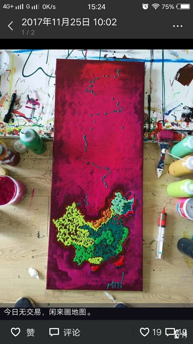 这么多年经历下来,我感受到了线条的真正量,这根线可以让你的精神跌宕起伏,连续的涨跌停令你欲生欲死。古今中外任何艺术家都很难理解线条还有这般魔力,唯有股民懂,但却不知它的美。而我作为一个创作者,透过大盘看到了其中的无限风景。把投机世界跌宕的走势作为我心中的艺术景象,它不是具象也非抽象,既非传统也不现代,更不是简。它是真正的现实主义,是集政治、经济、文化、心理于一体的线条和符号,是对当下股民K线生活的最真实写照。