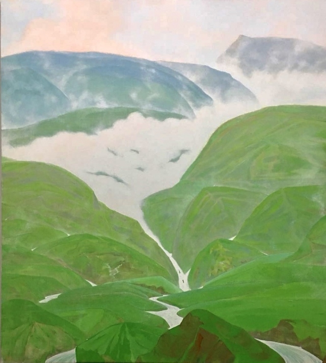 在两尊雕塑中间,肖谷的油画《绿水青山》映照着中国山川大地的蓬勃新景。此外,华人艺术家崔宪基的油画《打坐系列》、杨冬白的琉璃《山中人》则是对传统文化的现代解读和国际化表达。