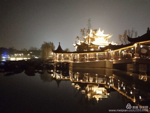 走过曲桥回廊,走过石子铺就的小巷,眼前便又是一番景致,欢愉的目光里铺满了夜色的锦。