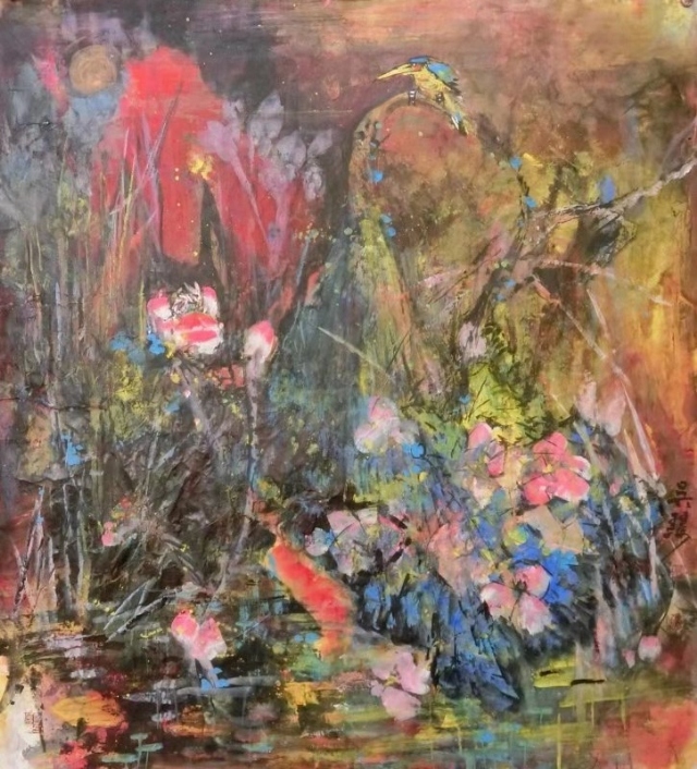 我的绘画是不受约束,自己作画、随意作画。有些时候,先是乱画,过程中会有意无意的形成一些偶然形、有机形,然后我会迅速抓住,使其成为一种主题思想。但这不是绝对,主题是一直在变的,变到最后也许面目全非,那才是真正情感的宣泄。再进行有知的玩性和无知的渗入,尽力把传统国画的笔墨与西方艺术相结合,保持画面的丰富性、偶然性、神秘性。让七色翩翩起舞。更具视觉张力,给人以更美的享受。