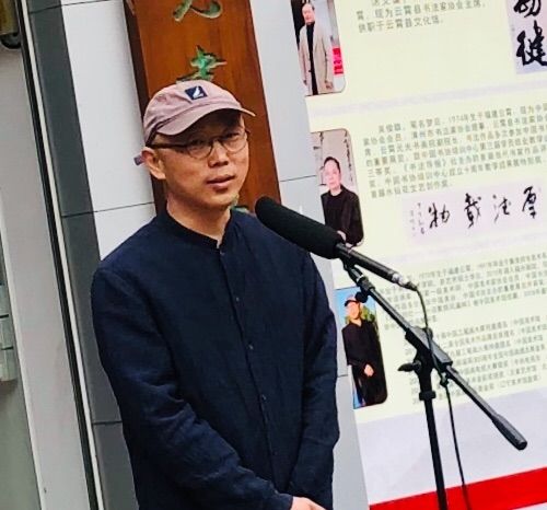 今天参加这个活动一个是感情上,我与老方几十年的朋友了,一个是来学习。我认为中国书法是作者对感情的承载。从感情到情怀是做为一个文化人,一个书法家的成长所需要的过程,我以为情怀在物化创作方面,有什么样的情怀,什么样的创作氛围,就有什么样高度的作品产生。老方与他的几位同学教学相长,使云霄这个地方有了良好的学习书画艺术的氛围。而且他们各自打开心灵的窗口,找到自己的发挥点,这样他们在未来的艺术道路上会有很好的发展优势。刚才看了展览,老方不断砥砺奋进,他的情怀在书、在文,他把写字与生活结合在一起,有不尽的情怀,有年轻的心态,他还有一个很好的身体,所以象刚才几位说的,他虽然今年已经七十了,但才是刚开始的第二春,我们景仰他的第二春,希望他今后的日子会更加神采飞扬。另外七位同学,每个人都能找到自己的窗口,未尝不是好事。象秀娟写的字,我认为一个人能夠保持对书法一种字体纯粹的把握,而不是灵魂的片断,这是一种文化修为。我们不可能每个人都担当历史重任,但只要都能把自己做好,就能百花齐放了。看到俊雄的字就想到当年的“广西现象”。广西的几位书法家长得并不特别高大,但他们写字的暴发力往往是相反的。俊雄的字豪放、古雅、简朴。文谦虽然不参加国展,其实也很好,这种心态正是我现在的心态。古代没有国展,现在的台湾、日本也没有国展,同样有很多写得很好的书法家。书法最终不是由展览,由什么人来评判的,也不要什么光环来笼罩来决定的,所以得失之间不要看得太重,自己的情怀一定要守得住。其他几位都写得很好。他们十几年能保持一个调子这也不容易。