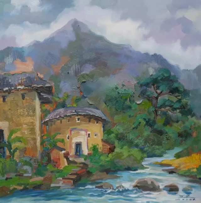 以油画的形式来呈现一个真实的客家!