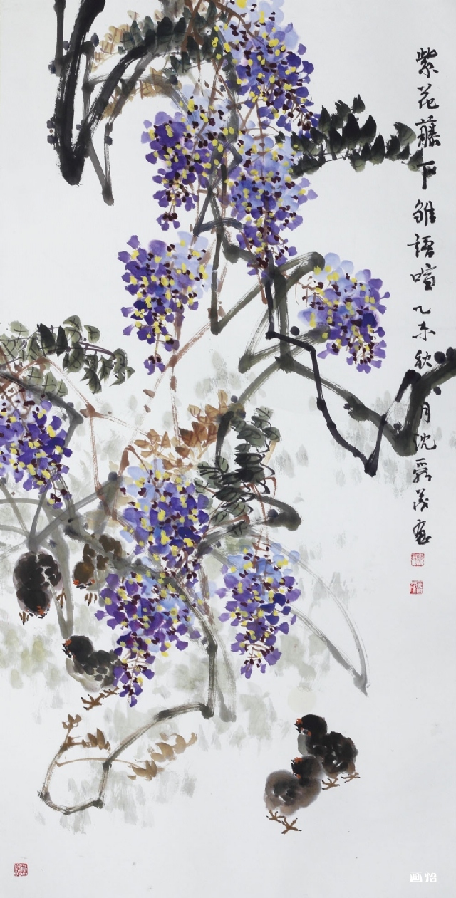 《紫花藤下雏语喧》69cmX139cm