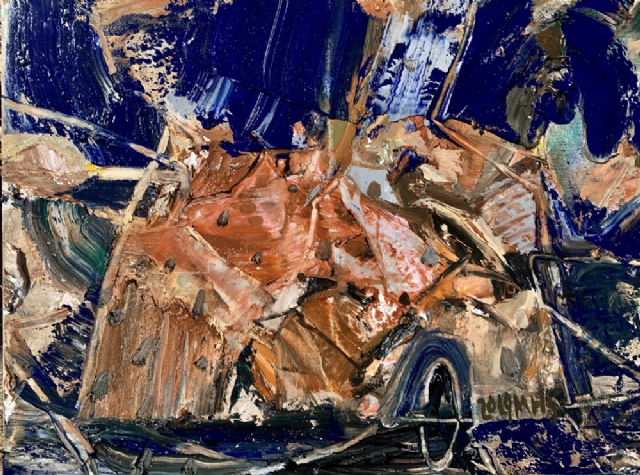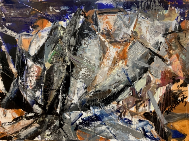 就象平常我想喝的烈酒一样,我的绘画处于一种即将被动的情绪下进行。首先给我带来的是平静,之后是焦虑、不安、狂躁,直至颠覆着绘画的极致情绪,从狂乱的线或形中寻找不同的图式,来切换心里的位置,那种狂乱的偶然性在我内心极其矛盾,我不断寻找出自身的问题与平衡,一种不曾体验过的形与色,摆脱束缚与困境,推动我走进复杂的心境,去扒开我感悟到的绘画另一个世界。