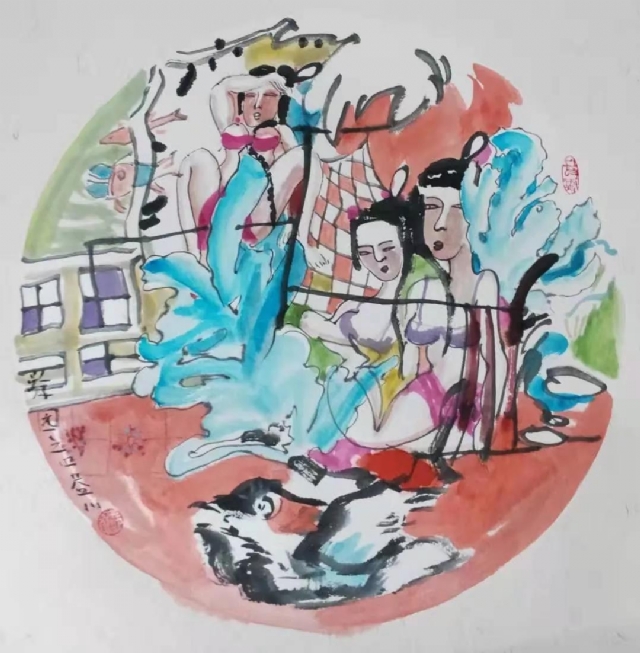 晋人宫红权是才情皆备智慧型画家,他为人仗义,是一位很好的合作伙伴。他的彩墨亦真亦幻,近来市景山水新作有新意和趣味,像魔术一样的好玩,是会用脑子的画家!