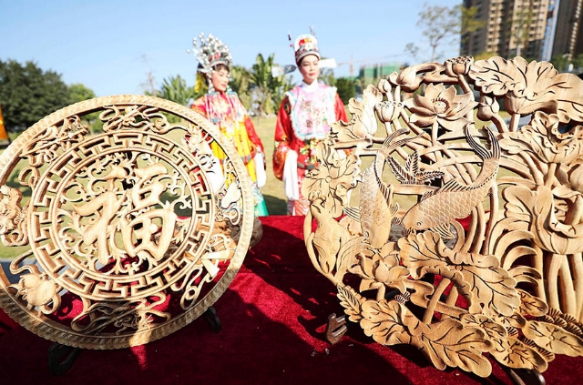 2019年12月2日,福建省漳州市诏安县,在百家媒体聚焦“花样漳州”采访开镜仪式上展示的市级非遗古香艺雕。当日,来自该县多个非遗项目集中亮相,成为活动的一大亮点。诏安文化底蕴深厚,拥有省级非遗4个,市级非遗7个,县级非遗29个。光明网记者 季春红摄/光明图片