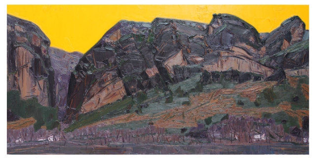杨荣孙 《武夷岩韵——元宝峰》油画 2018 90x180cm 主要代表作: 《大地肌肤系列》 《河边风景系列》 《盛荷系列》 《窑洞人家系列 《老房系列》 《武夷岩韵系列》
