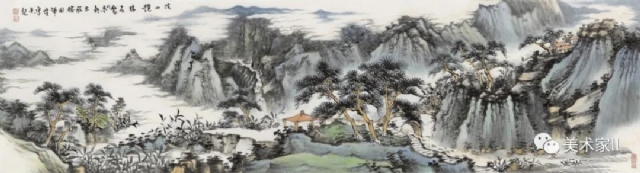 他的山水,既显示出他特有的书法笔意入画形成的笔墨语言风格,也突出了他以浑凝厚重的量感、苍茫郁结的明暗、严谨强固的构成、淋漓响亮的笔墨、清润雅逸的色彩,去展示大自然的内在节律和无言大美,渴求着“俯仰天地大,局促南北宗”(贺天健语)的豁然开悟之境。