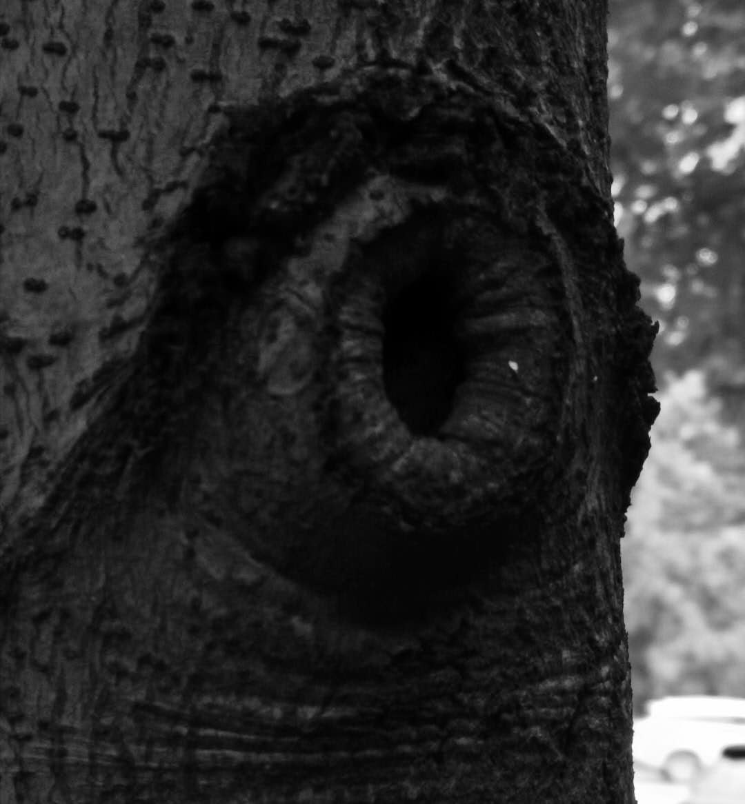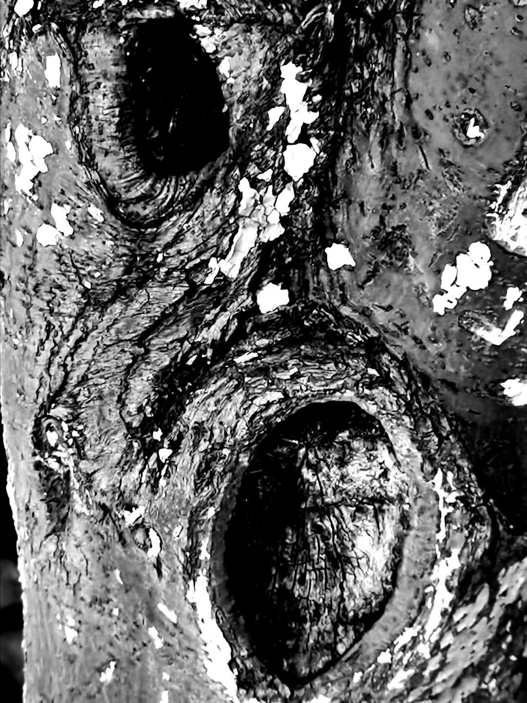 这些孔洞都是因为树截枝引起的……这样和伤痛发生了联系