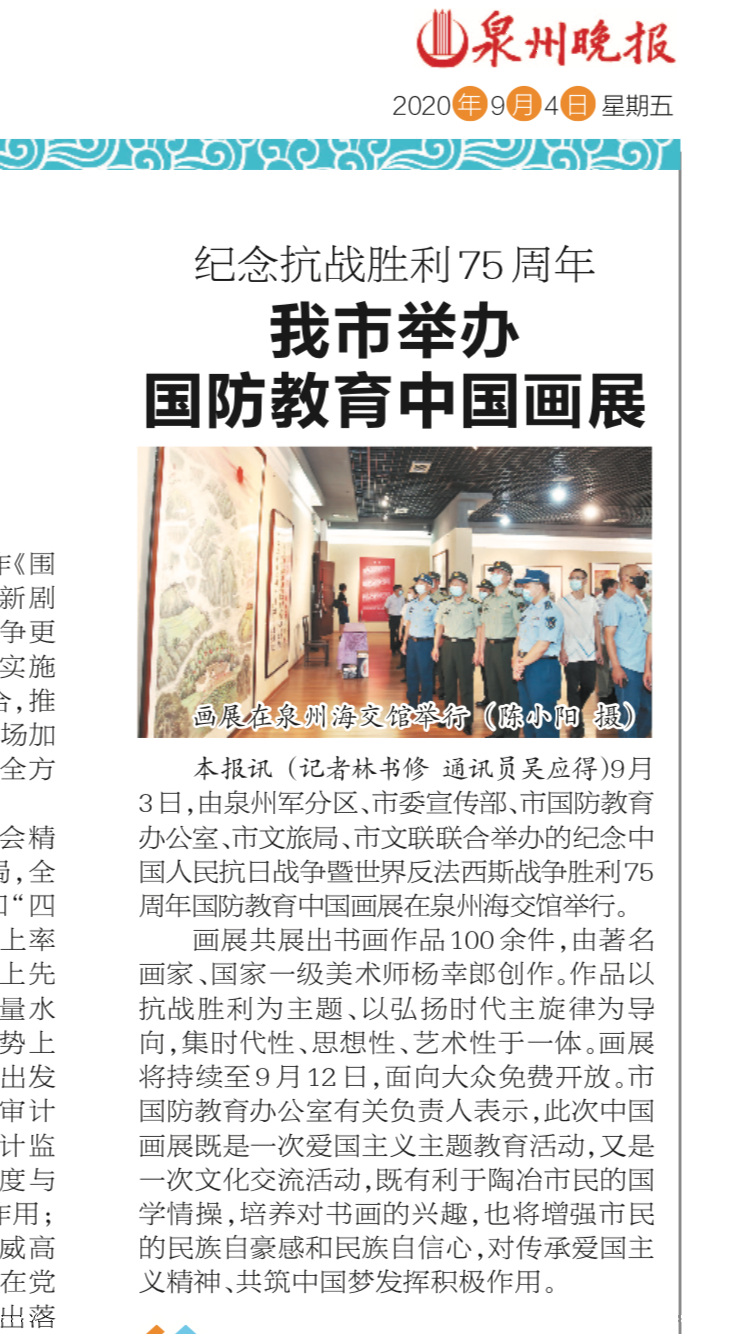 纪念抗战胜利75周年 泉州市举办国防教育中国画展