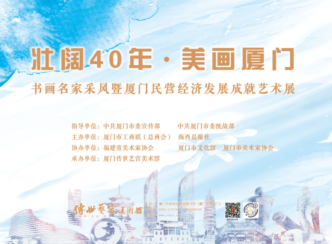 近日,由厦门市工商联(总商会)、海西晨报社主办,厦门传世艺宫美术馆承办的“壮阔40年,美画厦门”书画名家采风写生活动已成功举办。艺术家为此创作的主题作品,将和其它优秀书画作品一起,于10月31日-11月1日在厦门国际会展中心举办的2020年中国(厦门)商人节大会现场展出。