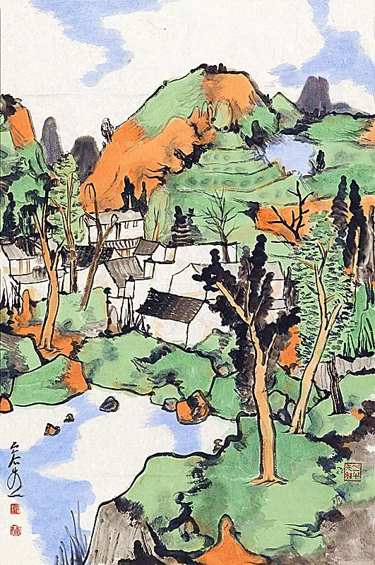 林容生《 曲溪乡的村庄之四 》纸本水墨设色 200x160cm 2014