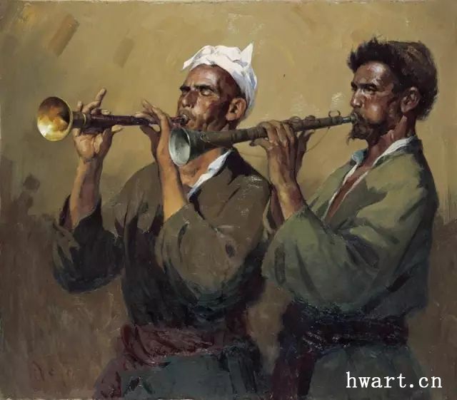 每当放暑假的时候,画家全山石就会准备行装,他的心已经飞向了新疆。对于他,新疆已可称得上是他的第二故乡了。这些年来他有计划地每年去一个重点地区,几乎跑遍了整个新疆。去年他去了新疆的和田,那儿是维吾尔族同胞集中居住的地方,是当年丝绸之路上的古都之一。它位于塔克拉玛干大沙漠的边缘、昆仑山的脚下,是古代丝绸之路的必经要道,那里人烟稀少,有的地方几乎没有人烟。在那里居住的维吾尔族同胞形象很有特色:粗犷、纯朴、强悍、健美,妇女们的服装色彩也特别强烈、鲜艳。全山石就是怀着这样一种要在那大沙漠边上的绿色王国中寻找美、表现美的急切心情,不怕艰难困苦,背着画箱千里迢迢地来到了那里。那里生活条件是艰苦的,需要自己起火做饭;那里水源缺乏,每天需要从很远的地方提水。好在夏天当地的瓜果多,西瓜几乎成了他的主要饮料。每天外出画画,他都会带上一个馕饼和一个西瓜,这几乎成了他的主要粮食。为了在大自然中发现美的意境,为了在维吾尔族的男女老少同胞中寻找美的形象,他对这种天天如此简单的生活方式已经习以为常,甚至自得其乐了。对于这位具有高度艺术事业心的油画家,当场即兴作画,用画笔表现美的形象和美的景色,就是最大的乐趣了。至于生活上再怎么苦,也不在话下。