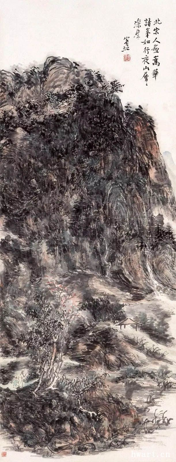 中国山水画发展到清代“四王”(王时敏、王鉴、王翚、王原祁)之后,与当时的民族精神一样衰微柔弱。是西方列强的炮声,震醒了中国人民。迫在眉睫的亡国危险,使中华大地群情激奋,而表现在绘画上则需要刚劲、大气势的审美观,如果说在当时花鸟画画坛中出现了吴昌硕,那么山水画画坛则产生了黄宾虹。他们的作品以磅礴的气势体现了那个时代的民族精神和人们的审美要求。