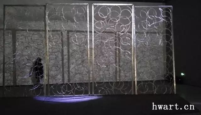 在生命与现实中,总存在着巨大的矛盾和落差。当观赏着游动而充满水墨诗意的光影,被转换为直面芒刺的铁丝网时,这样视觉和感知上的冲突,也许会带来更丰富的感悟。(王璜生)