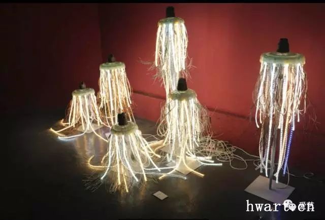 张海鹏 《水母群》 玻璃绝缘子/LED灯线/铜丝