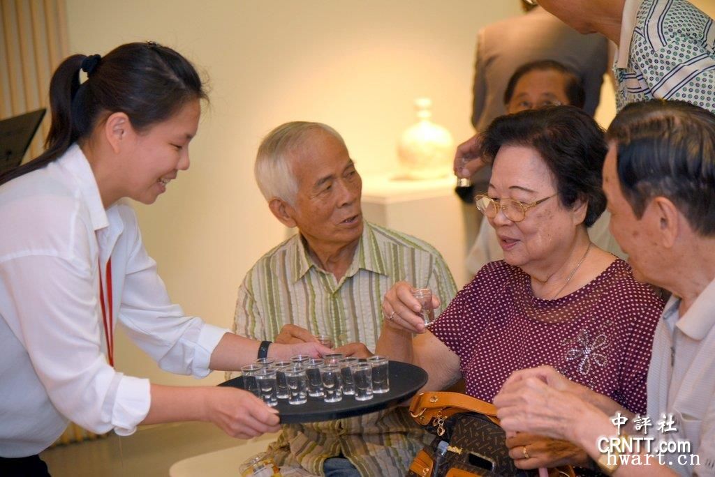 13日的開幕茶會,吸引南台灣各界參與,還有“品酒網”號召資深酒客們前來與會,開幕式上,台灣藝術公司董事長、台灣藝術研究院院長林富男頒發特聘工藝師聘書予金門陶瓷廠資深彩繪師,並特別開一瓶“双金彩陶”酒,邀請現場貴賓齊來品味58度金門高粱酒,品酒網資深評論家黃玉清表示,双金彩陶的酒與一般58度金酒不同,帶點陳年高粱酒的口感,非常醇厚;與會貴賓咸認金門酒廠的高梁不愧台灣之光,配合金門陶瓷廠純熟精練的燒製技術,再加上兩岸藝術家的高超藝術創作,正可說是“金酒留香、名瓷傳世”。