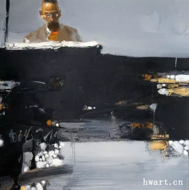 音乐作为一种流动性的时间艺术,以声音的速度、节奏等遵循一定的规律构成或低沉雄浑或悠扬婉转的绵延之音,在可见的境界中欣赏不可见的心境;我始终认为音乐所具有的生命力能给人以激励和启示。在动态平衡的原则下,音乐作品始于静,经过动的演绎,最终又回归静态;而欣赏音乐时,音乐是动的,人的状态处于静止,但心绪却又悸动。探寻和表现的实质即音乐与生活的内在性,而不是其表面形式。只有从心灵深处去表现,才能抓住音乐的动力感。其过程既是对音乐徒生情愫的诠释和表达,又是作者心灵的自我表白,传达自我从内心深处所悟到的人与音乐不可分割的感受,才能唤起人们对作品产生一种亲切的感情。记得曾经看过法国一个著名爵士乐队的现场演出:一位满头小辫的男钢琴手弹着弹着就跑到后台去了,过一会又跑出来接着弹,却觉得音乐并没有因他暂时离去而间断。这位真正懂音乐、玩音乐的行家,给人们带来激情和舒适。音乐最大的魅力莫过于对想象力的激发。在音符的流淌中,想象与联想得到了最大限度的发挥。而在绘画过程中,只有积极、主动地处理并追求特定条件下的整体和谐效果,才能在创作中主动感知、发现自然物象本身的审美内涵所在,并按自己的个性审美追求产生想象和联想,寄寓情感,将自我表现逐步过渡到具有创造力和表现力的艺术语言,升华出不同情趣和个性的艺术效果,创造出最佳趣味与意境。并非只是纯粹的记录或再现,也没有刻意具象描摹音乐演奏现场,而是通过颜料的叠加、色彩的铺陈,在抽象的笔触中营造出充满音乐听觉的视觉空间,展现乐者深沉内敛的艺术气质,从而抒发胸臆。放任想象与画笔的碰撞,尽情抒写自我的感情诉求与心怀。通过对光线明暗的对比和创设情境,营造戏剧般的效果,画面色调、用笔、造型的细微度等所有因素交织在一起,整体处理复杂画面中的人物在场景光线下的明与暗,用光线强化显现出画中的主要部分,让画面的暗部消融隐藏在暗影之中,在显现与遮蔽中呈现出画面人物的精神状态和性格特征,在明与暗、显与隐的轻松氛围中,使整个画面形成一种强烈的戏剧性效果,稳定而庄重。通过油彩层层叠压、反复调整,使细节的变化得以丰富,从刚开始那种单一而强烈的倾向性又回到自然状态,并以独有的发散思维方式敞开在画面中,画面在时间和空间中奇异地交织辉映,人物表情或坚毅自信,或深沉忧郁,或优雅高贵……通过对人物动态、面部表情和氛围营造等等表现, 所有的因素都参与其中,交织起来,展现出人的精神性,进而在笔触与色彩的相互交织中呈现出音乐的华釆,其精神灵韵也伴随着笔触的混杂、交织和颜料多层覆盖的叠压、罩染,呈现出生命的和谐、饱满与激情,乐者们被光韵照亮,正如生命的某些抽象性因素,在时间的延续中得到永恒。