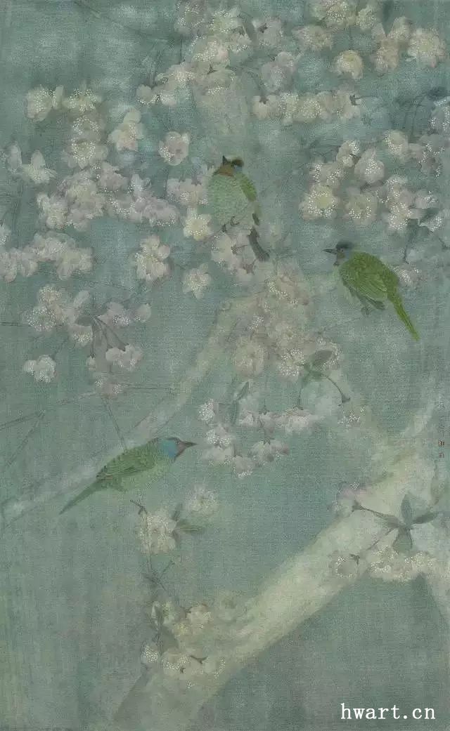 江宏伟《鸟鸣海棠里》 67x46.5cm 2015年