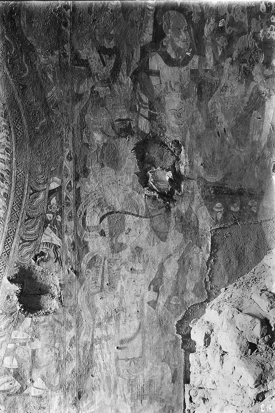 随即他们在一个洞窟中,发现绘满色彩的壁画,有诸佛和各种姿势的菩萨,有的合十、有的散花、有的奏乐。天人的舞姿、魔鬼的凶相,色彩、用笔都有很高的造诣。还有泥翅佛像,对欧洲人盗取壁画的方式气愤之余的日本人也取出了特制的“狐尾锯”切割了足以欣赏的壁画7块,获得泥塑佛像7身。