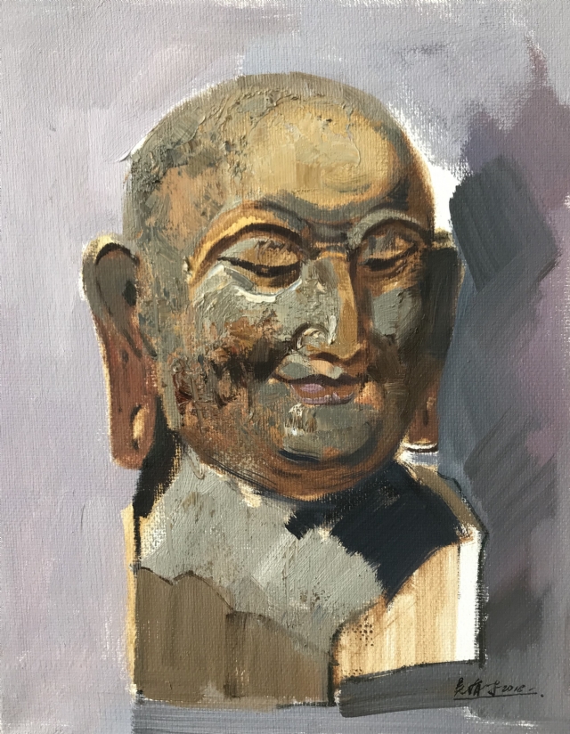 吴有才:男,1978年出生于江西省南丰县(蜜桔之乡,曾巩故里),2000年来厦门从事绘画至今,2012年正式定居厦门。台湾美术协会顾问,福建省美术家协会会员,福建省油画学会会员,厦门市美术家协会会员,主要作品有《乘象入胎》《夜半逾城》《往事如烟》系列、《佛.爱》系列等。