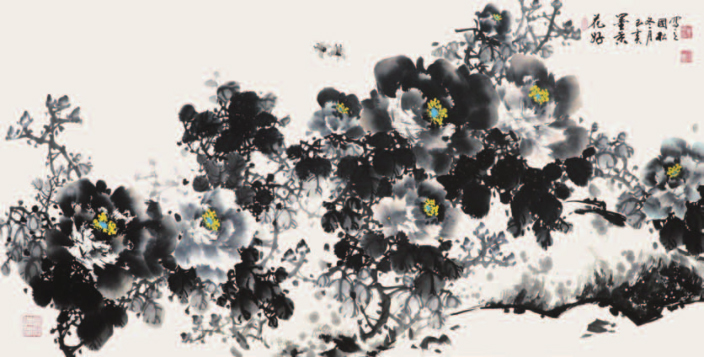 一幅优秀的美术作品不是三言两语就可以说得清道得明的。早在南齐时代,著名美术理论家谢赫就提出了关于品画的艺术标准——“六法论”:气韵生动、骨法用笔、应物象形、随类赋彩、经营位置、传移摹写。观之郑国松先生的花鸟画,“六法论”的精髓在他的笔下得到了传承。那“梅兰竹菊”天趣而盎然,牡丹花形似神俏,格调清奇,“繁花似锦”大有看花忽见乾坤绚,七彩霞辉悠我心”之境,一种形神兼具的极佳境界,让你真正能领略到人与自然融为一体,寻觅到人人向往的憩息地。而这,正如谢赫所强调的品画最高美学准则——“气韵生动”。